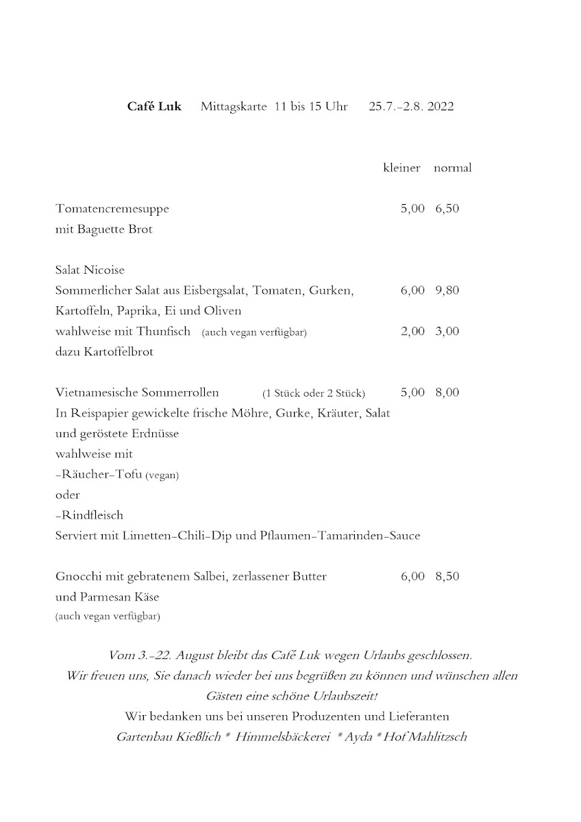 Cafe Luk Menu